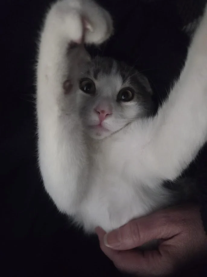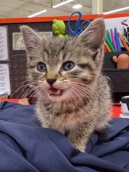 Pip was found abandoned in a local lumber yard as a 2lb kitten. She has been with us since July of 2025, waiting for her forever home.